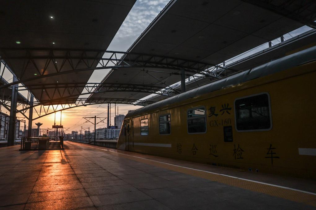6月1日,凌晨四点五十分,综合巡检车驶出沈阳北站。 新华社记者 潘昱龙 摄