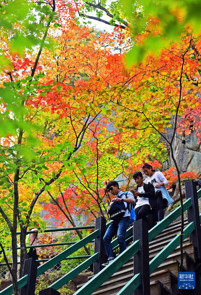 游客在枫林谷景区游玩。新华社记者杨青 摄