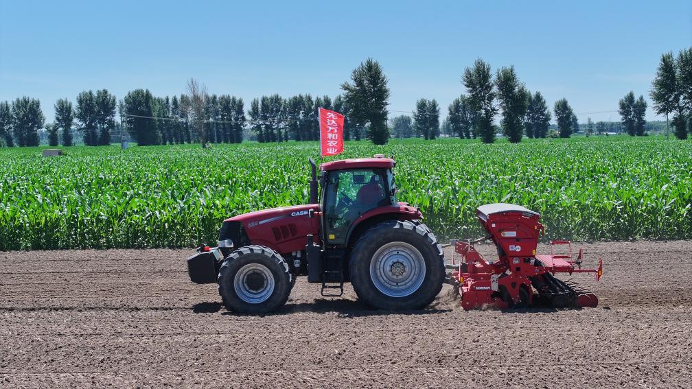 7月7日,在辽宁省阜新市彰武县,播种机在播种大豆。(受访者供图)