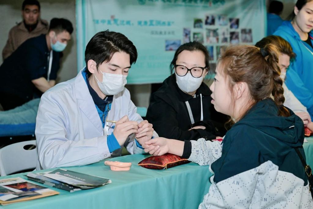 在中医药文化夜市沈阳站,有一道别样的“风景线”引人注目——来自韩国、澳大利亚、美国等国家和地区共计15名本科留学生、12名研究生留学生也加入到义诊队伍中。