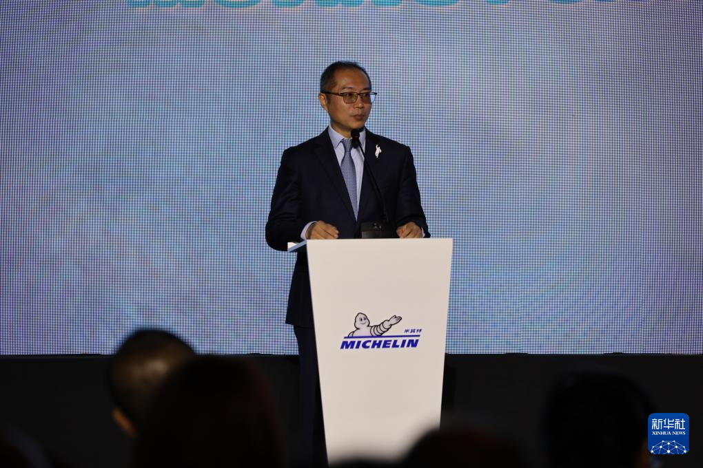 图为米其林大中华及蒙古区总裁兼首席执行官叶菲在活动中发言。新华社记者韩赫 摄