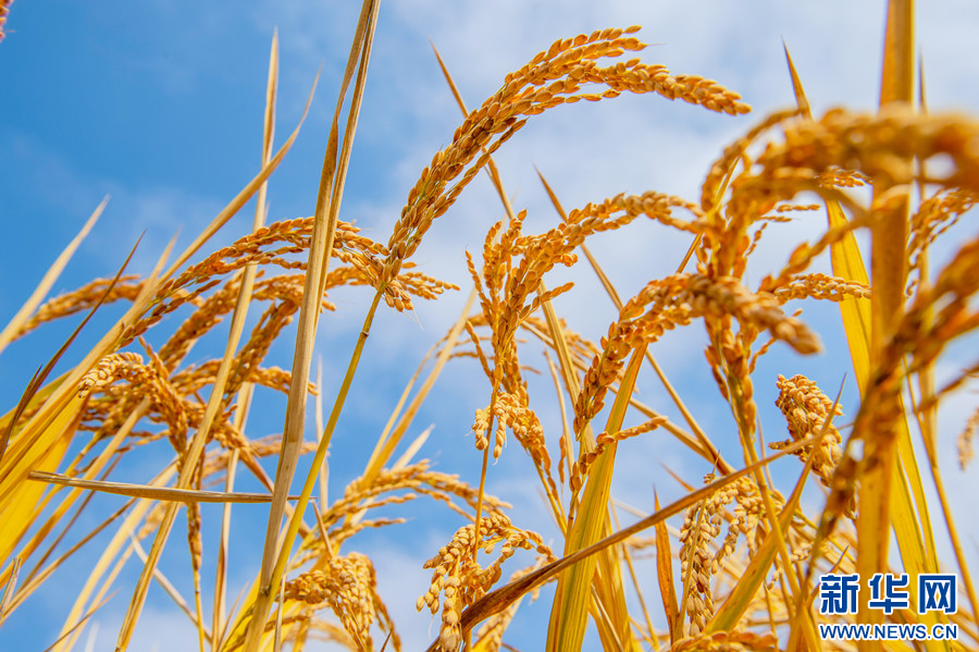 图为阳光下成熟的水稻。新华网发