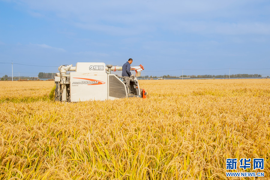 近日,辽宁省沈阳市辽中区的水稻陆续成熟,农户们抢抓农时收割稻谷。放眼望去,金黄色的田野上,收割机来回穿梭,呈现出一派热闹繁忙的秋收景象。
