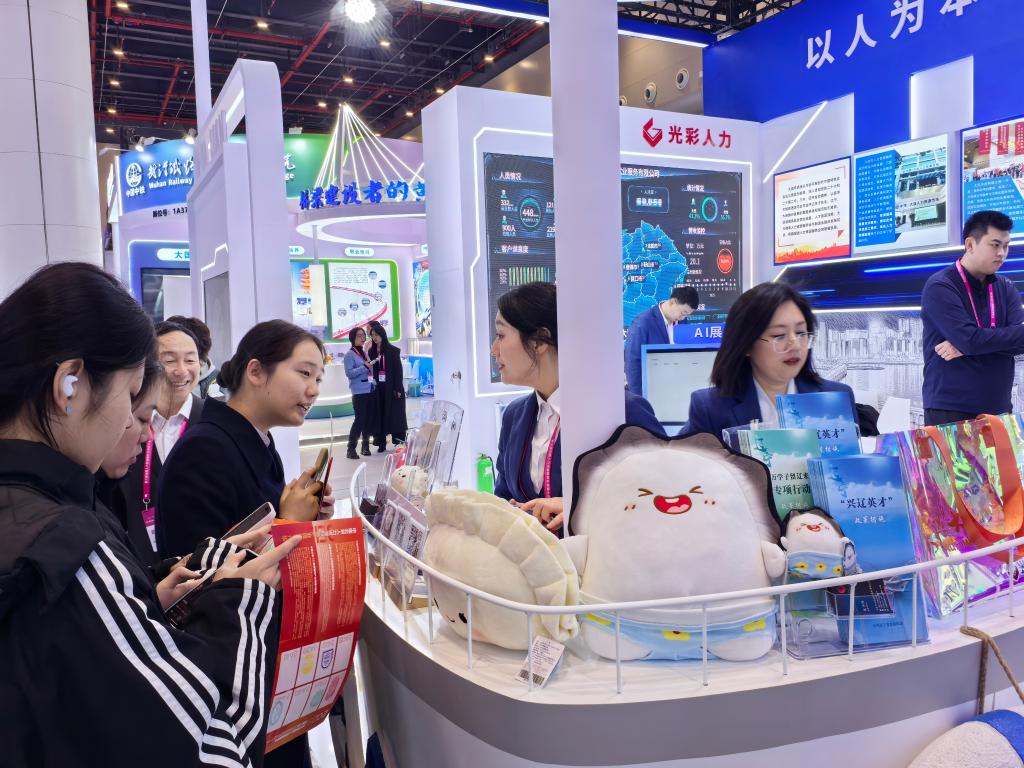 与会者在大连市光彩就业服务有限公司展位参观交流。(受访单位供图)